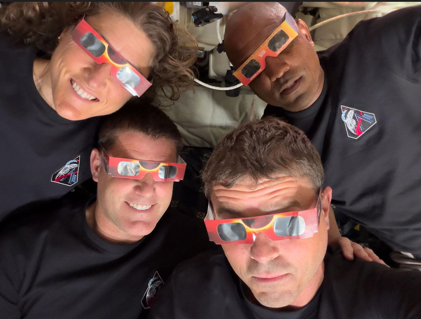 Ook vanuit de ruimte....: met een veilige eclipsbril naar de zonsverduistering kijken.