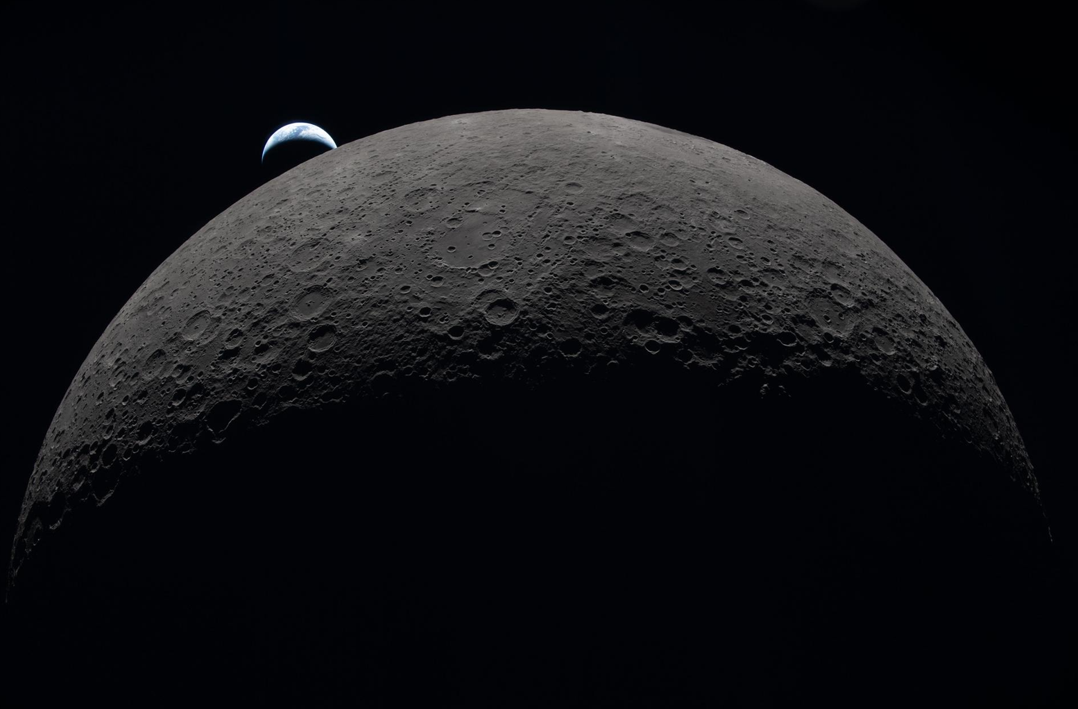 De aarde verdwijnt achter de maan